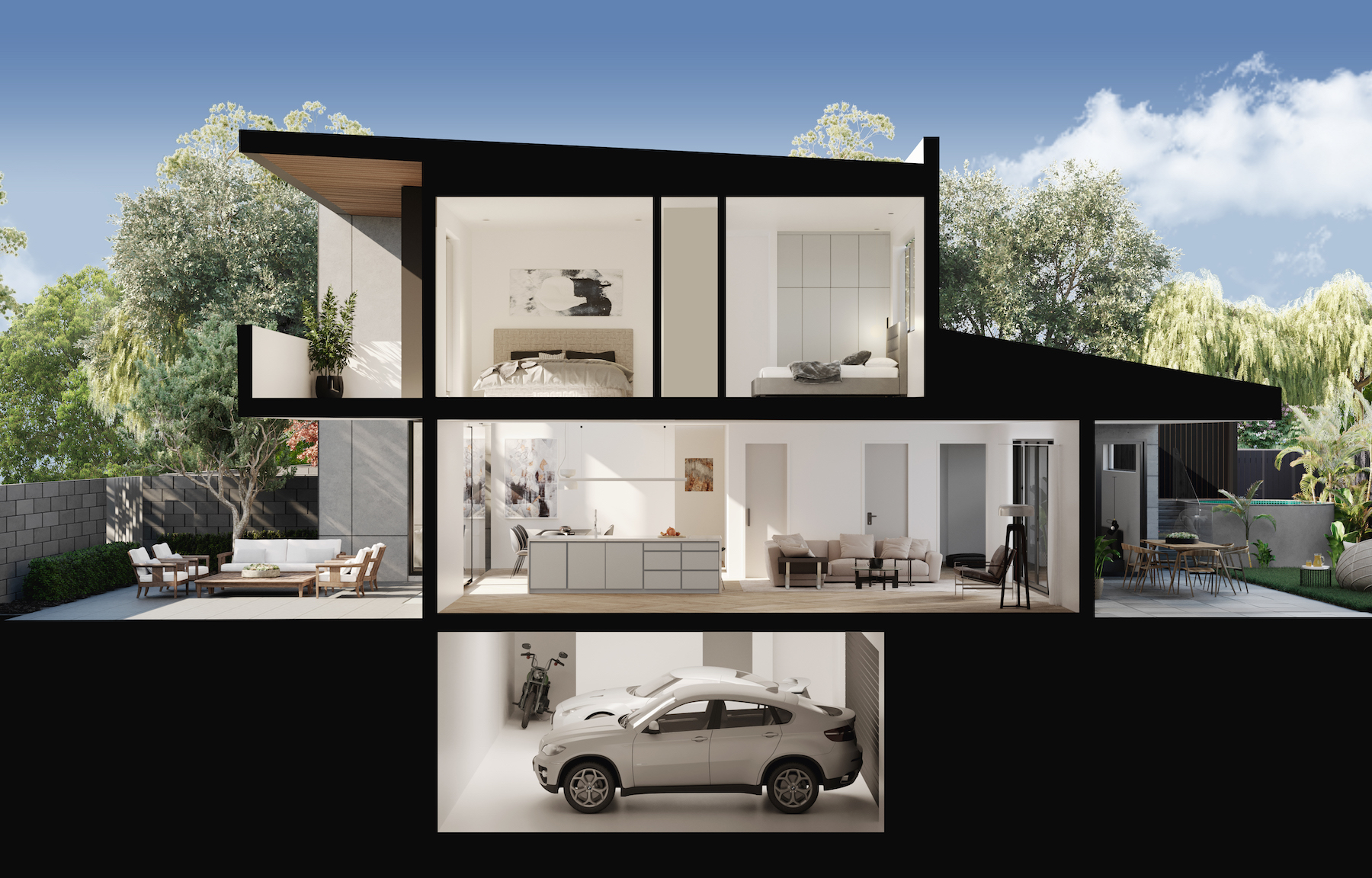 Designed by DNA Architects and with interiors created by Capezio Copeland, Sage captures the essence of Campbell’s glistening lifestyle with an edgy modern feel. Featuring open plan living, a stunning landscaped yard with optional designer plunge pool for buyers, generous outdoor terraces, double glazed windows and doors, internal lifts, secure double car basement parking and 6-star energy rating for sustainability and year-round comfort.